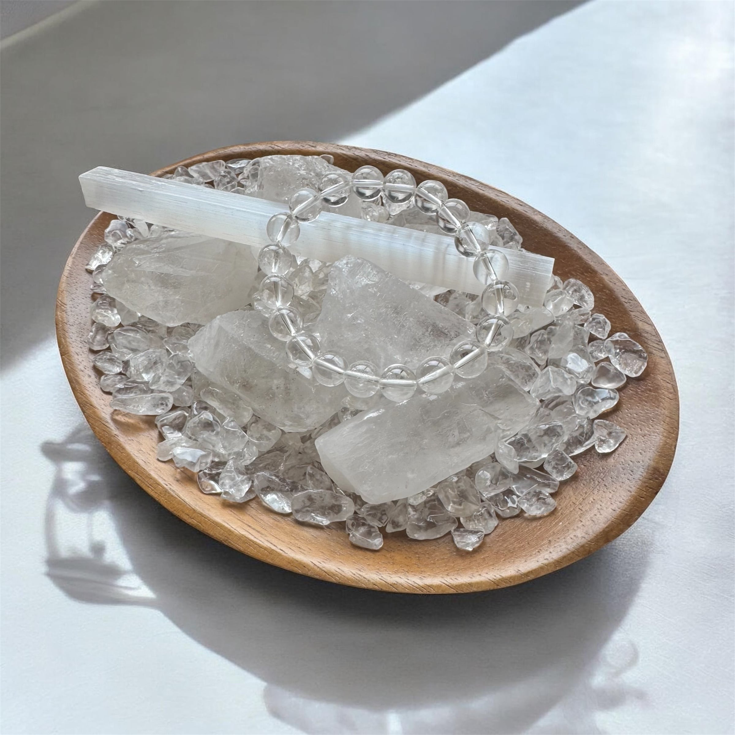 ■ヒマラヤ水晶 浄化スターターセット さざれ250g オーバルの木の皿付き